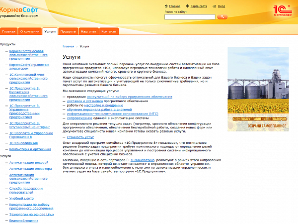 Корпоративный сайт 1С Франчайзи "КорневСофт". Реализован на платформе 1С:Битрикс - Сайт 1С Франчайзи.