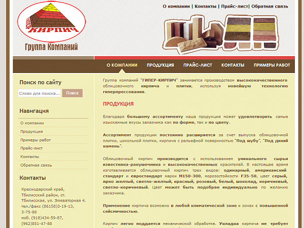 Корпоративный сайт для компании "Гипер-кирпич". А также разработка фирменного стиля и подготовка каталога продукции. Бюджетный проект без CMS.